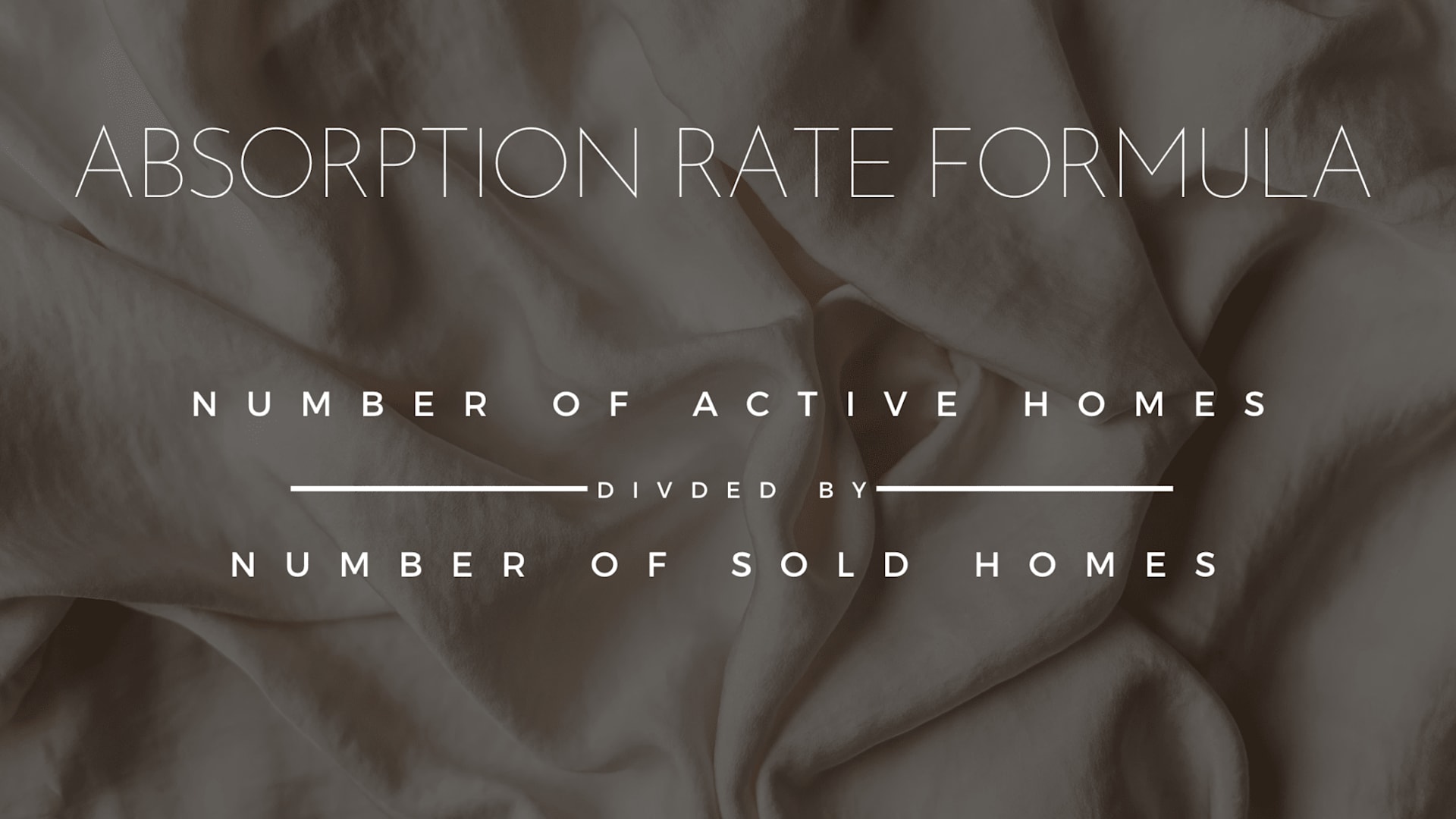 Absorption rate is a number that shows you how quickly homes are selling in your area. The most effective way in my opinion to calculate absorption is on a monthly basis. It’s calculated by dividing the number of homes sold in a month by the total inventory available at that time.